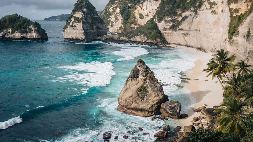 Diamond Beach is a hidden gem located on the eastern coast of Nusa Penida Island, which is part of the Bali province. It is renowned for its pristine white sandy beach, dramatic cliffs, crystal-clear turquoise waters, and breathtaking panoramic views. The beach gets its name from the diamond-like shape of the cliffs that surround it, giving it a unique and captivating appeal.